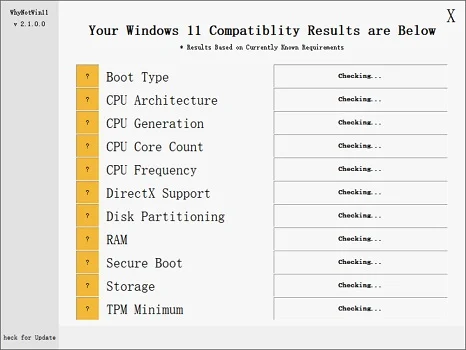 8、如果我们已经确认开启了tpm2.0,那么还可以尝试下载一个whynotwin11,来看看究竟是哪里不满足配置要求。