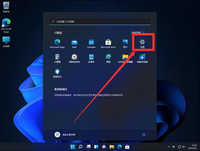 打开开始菜单-》设置。