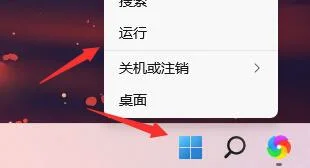 1、首先,右键点击任务栏上的开始图标,然后点击运行。