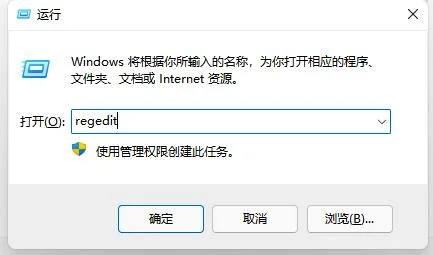 2、运行窗口,输入regedit命令,按确定或回车,可以快速打开注册表编辑器。