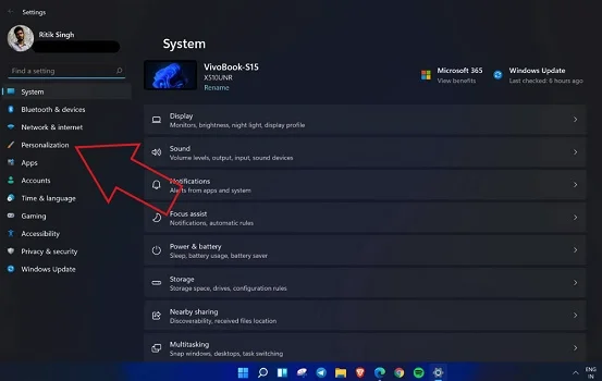 第四步、然后找到左侧边栏的“个性化”设置。