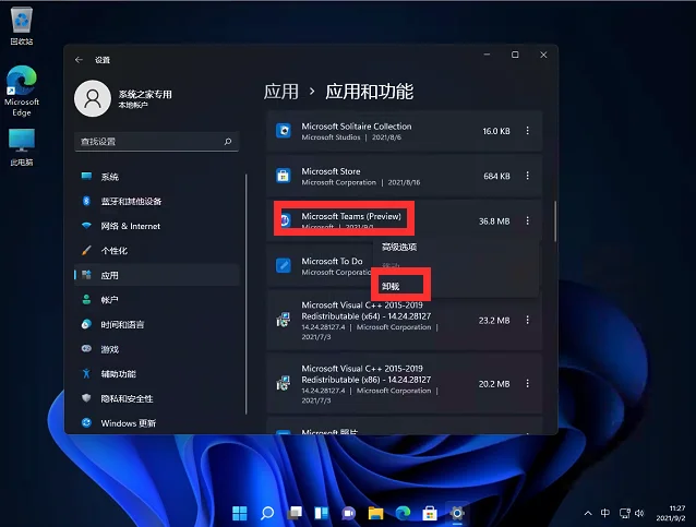 方法一:卸载teams