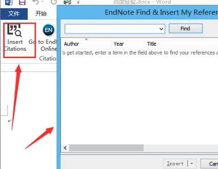 2、随后打开word,点击目录中的“EndNote-insert Citation”。