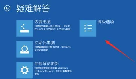 2、疑难解答中点–“高级选项”