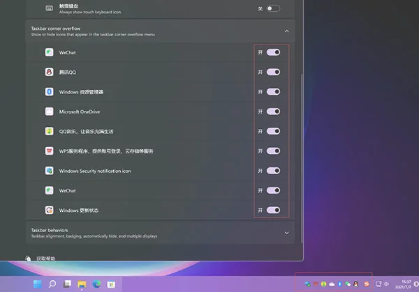 win11右下角图标怎么隐藏?在最新的win11系统中,微软也延续了不少win10的功能,比如对任务栏右下角图标的隐藏或者开启功能,这样让整个任务栏看起来更简洁,那要怎么隐藏右下角通知栏的图标呢? win11右下角图标怎么隐藏? 1、首先在任务栏空白处,鼠标右键桌面空白位置,选择【任务栏设置】。 2、进入个性化后,在右侧的菜单中找到盘【任务栏角溢出】。 3、点击任务栏角溢出后,将将要显示的应用图标开关打开或者关闭进行隐藏。 4、设置完毕后,我们就可以看到所有图标或者隐藏所有的图标。