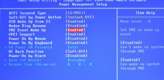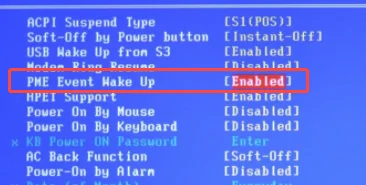 2、在界面中,检查网络唤醒EVent Wake Up是否是开启的。