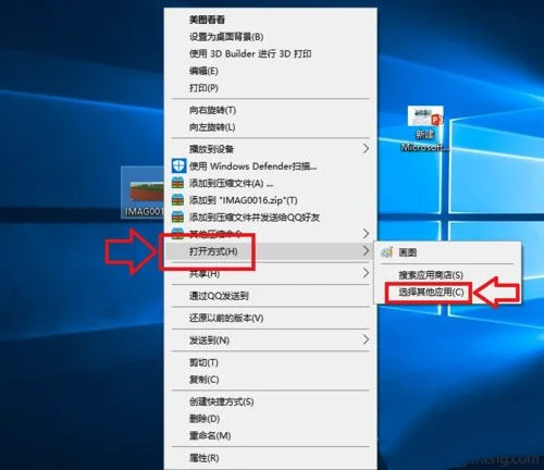 1、选中我们想要打开的文件,然后单击鼠标右键,在弹出的菜单框中选择打开方式,然后在展开的菜单中打开《选择其他应用》选项;