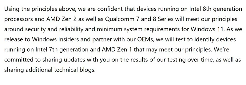 但需要注意的是,随后更新的博客文章,微软删除了“Intel 第 6 代酷睿和 AMD Zen 之前 CPU 不适用 ”的内容,但也没有再特别说明。