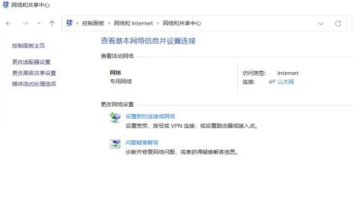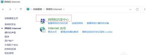 3、选择“网络与共享中心”