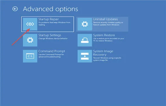 4、然后点击 Advanced Options然后点击Startup Repair。