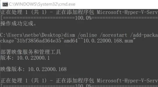 for /f %%i in (‘findstr /i 。 hyper-v.txt 2^》nul’) do dism /online /norestart /add-package:“%SystemRoot%\servicing\Packages\%%i”