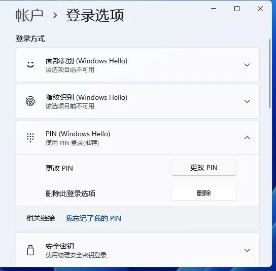 最后依次进入设置,账户,登录选项,使用PIN登录,然后点忘记我的PIN,重置,可以直接修改成新的PIN。