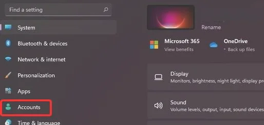 2、然后在其中左侧栏找到“accounts”,选择其中的“添加手指选项”。