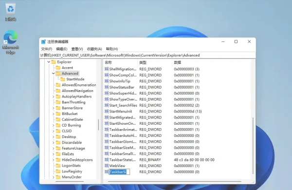 win11只有这个修改注册表的方法可以改变任务栏图标的大小,而且需要重启后才生效。