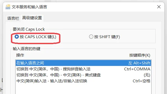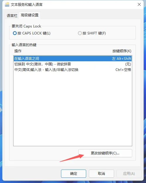 另外,切换语言输入法的快捷键也可以在这里进行设置。