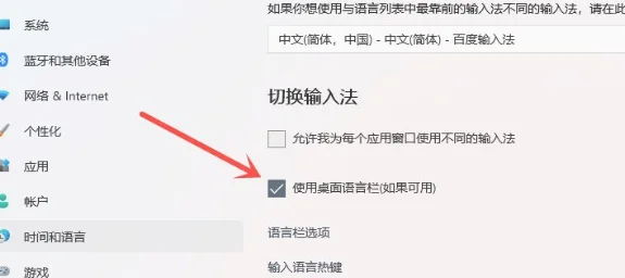 Win11输入法怎么设置最小化隐藏?不少用户都更新了最新的win11系统进行体验,但是与win10系统不同,很多用户都不清楚怎么进行输入法的隐藏最小化,那应该怎么设置呢?一起来学习下吧。 操作方法如下 打开开始菜单,点击【设置】。 进入win11设置界面,依次点击【时间和语言】>>【输入】。 进入高级键盘设置界面,点击【高级键盘设置】 取消勾选【使用桌面语言栏】即可。 结果展示。 以上就是全部内容了,玩家们快去试试吧。